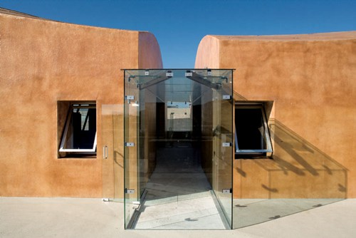 在被抬高的南侧,两个宽1.83m(6英尺)、带玻璃门的釉面盒体扩展到屋顶平台,为三层居民提供了户外露天平台。