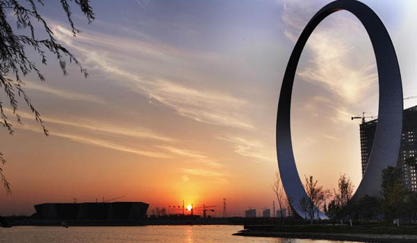 “生命之环”坐落于沈阳、抚顺交界的沈抚新城中央商务区。以它为坐标,往西12公里是承办过北京奥运会足球赛的沈阳标志建筑奥体中心;往北五六公里是沈阳的地标建筑百合塔,高125米,登塔可一览沈阳世博园全景。