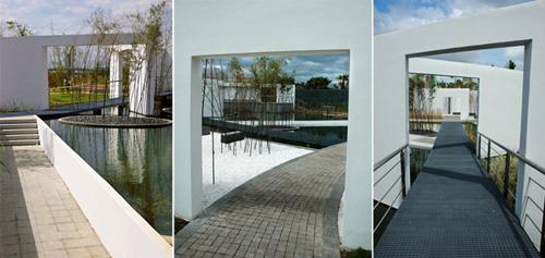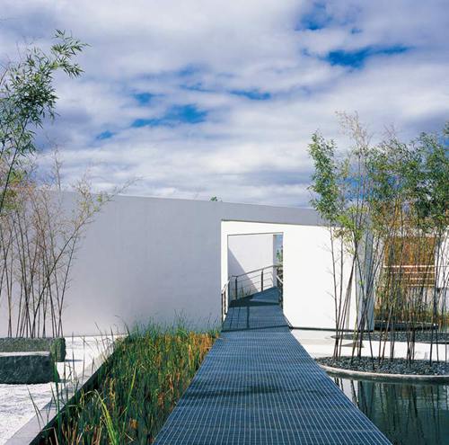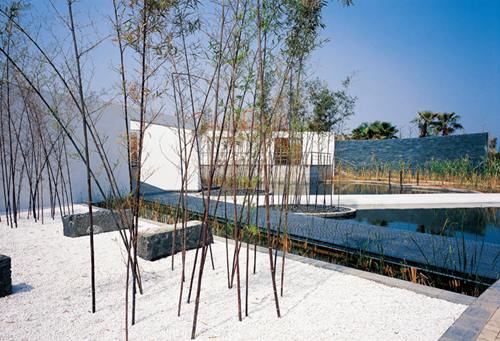 竹园是对传统园林的现代诠释,它的形式语言与传统园林没有直接的联系,但它带给人们的视觉转换和气氛体验与后者是相近的,它反映了设计师对中国传统园林深层面的思考,也反映了设计师对现代美学的追求。