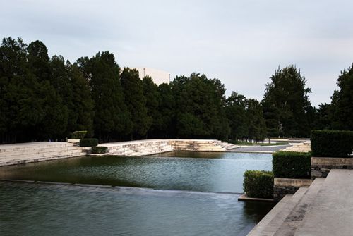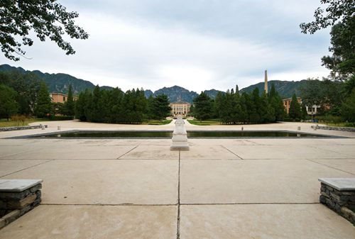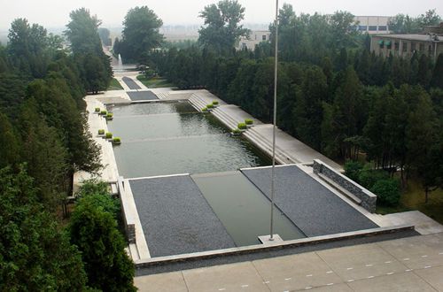 清华大学核能与新技术研究院位于北京市昌平区虎峪村,山水形胜以坐落在虎峪沟沟南前台地和洪积冲积扇区域一带犹佳,古“燕平八景”之一——“虎峪辉金”就位于这一地区。院址选择了东山南面的区域,占地约60公顷。轴线的北端即为101 主楼,主楼后的虎峪重峦叠嶂,形成了绝佳的背景环境。主轴线自101 主楼南起笔直地延伸,形成了长达近3km 气势恢宏的景观轴线。