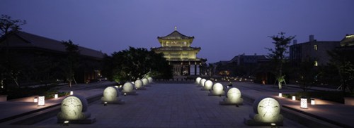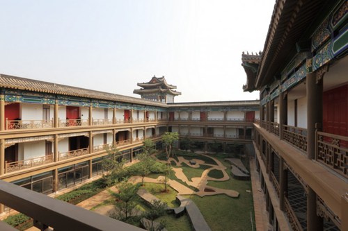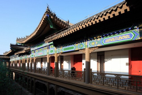空间特征:大堂的设计继承了中国传统的木构特点,从中式层架结构提炼出来简易的造型,沉稳而大气。若干金色柱子让人仿若置身宫殿,在富贵华美间揉入历史的凝重感。大堂吧喜庆而热烈的中国红让空间透露出高贵的意味,无数水晶玻璃错落而成的京剧脸谱,尽显戏剧人生的深刻含义。