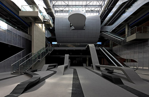在设计中,建筑师着意强调建筑的公共性及对城市的贡献,广场和建筑、广场和道路、内部广场和公共广场之间的界限柔化模糊使相互间的界面不断延续,公共空间和功能空间相互渗透,产生大量流动的、有质量的公共空间和复合使用空间,从而为使用者的活动提供更多承载的平台。