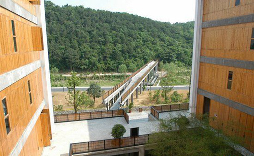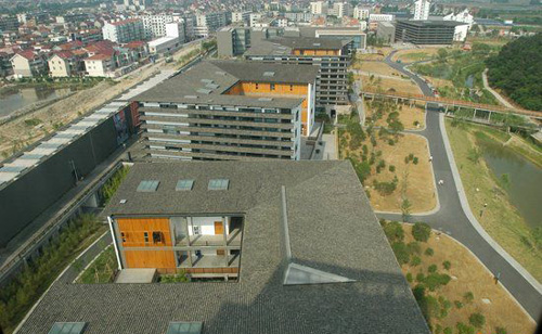 与那些沉浸于超速营造中的中国主流建筑师不同,身居学院要职的王澍远离现实的喧嚣,一意于他的理想城市、建筑的营造。园林城市和园林建筑的营造一直是王澍梦寐以求的,而象山校区正好实现和满足了他多年来的夙愿。这是一个人的、人文理想主义的校园规划和校园营造,两期营造环绕了象山,呈散点状分布山野间,随意而自然,没有刻意设计的建筑形象,也没有着意营造的中心校区,校区是铺展于象山脚下的园林城市。在象山校区,王澍有计划地大量使用了当地废弃的旧瓦,这不仅使建筑陡增了历史感,也表达了他对现实的态度:这些旧瓦大部分是1970年代江南初步富裕时期大量建造的产物,旧瓦的回收再利用既是追忆正在逝去的建造传统,也是应对剧变现实的批判性策略。更为重要的是,象山校区的规划与建筑设计隐含着再造东方建筑学的宏愿,也着意于建构园林城市、建筑的范本。