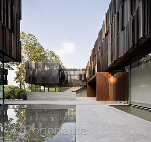 总部位于中国上海的如恩设计研究室在新加坡的第一个建筑项目日前竣工。为了向这一私人住宅项目业主的中国根致敬,如恩设计研究室的建筑方案从中国北方地区极具地方特色的四合院汲取灵感。为了满足这个三代同堂共四个家庭共同居住的要求并使居所适应于热带气候,如恩设计研究室重新诠释了这一传统象征。