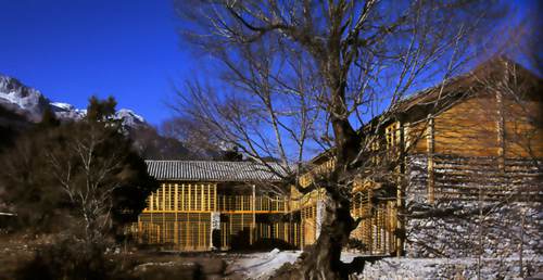 该项目的完成融入了大约160名学生和将近1300个村民的共同努力。整个建筑由3部分组成:一个带展览空间的社区中心,向整个村落开放,加上两翼的两层高教室。建筑吸收并打破传统的纳西四合院建筑的布局,创造性地以一端的一棵古老的枫树为中心,采用“z”形布局,并将院落一分为二。其一为学校内院,被两个教室单体和农田所界定,另一个公共院落则是由其中的一个教室单体,社区中心和洛克故居的外墙共同围合而成。