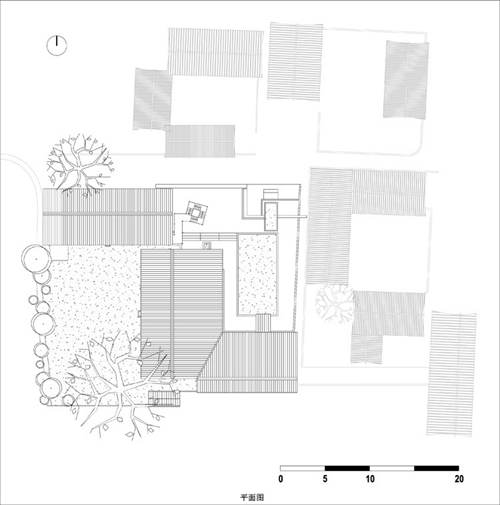 设计者意图将新增建筑与原有环境相融合,试图以一种现代语汇来诠释当地乡土建筑,而不是简单的模仿。因此,所有的传统审美处理手法还有装饰都被简约化:弯曲的屋顶曲线被拉直,山墙的装饰也被简化成木制格栅,其灵感来源于传统的农家晾谷架。乡土建筑的精华被提炼,并以形式和空间的方式表达出来。这里,建筑师保留了坡屋顶的基本元素,例如灰色瓦砖的运用,以及将内部空间以传统的正开间划分等等。