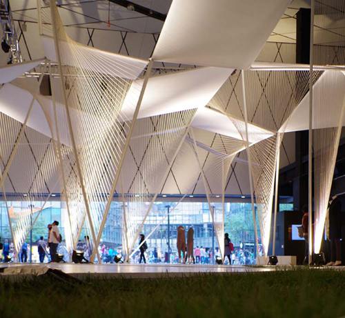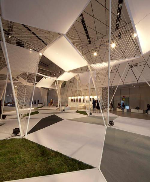 庆典期间的橙色大厅将会变身为以著名的芬斯勒流形为原型,采用自然环保材料,通过一系列变换聚集的几何图形打造出的名为“芬斯勒变换”的主体空间 。这是由王振飞主持的HHD_FUN建筑设计团队创意设计并安装的。