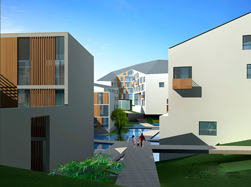 该项目坐落于深圳市蛇口半山区,为典型的山地地形。本设计的内容为主题式酒店和酒店式公寓;设计总构思为:山外山,园中园。中国人通常使用的“山水”和“园林”表达了一种生活哲学的思想和对自然的向往。设计师运用此概念,希望能塑造全新的居住空间,将传统的居住模式和现代生活结合。
