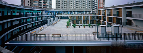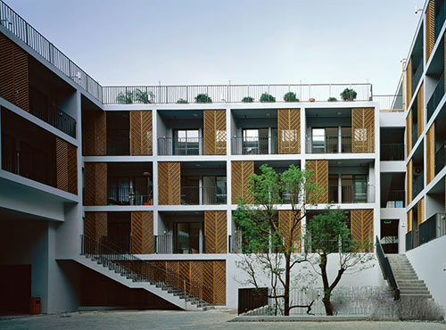 将土楼作为当前解决低收入住宅问题的方法,不只是形式上的借鉴而更重要的是通过对土楼社区空间的再创造以适应当代社会的生活意识和节奏。传统土楼将房间沿周边均匀布局,和现代宿舍建筑类似,但较现代板式宿舍更具亲和力,有助于社区中的邻里感。都市实践秉承了这一传统优点,并在内部空间布局上添增了新内容:每户室内面积不大但带有独立厨房和浴室, 每层楼都有公共活动空间。社区的食堂、商店、旅店、图书室和篮球场为民众提供了便捷的服务。