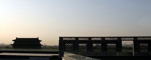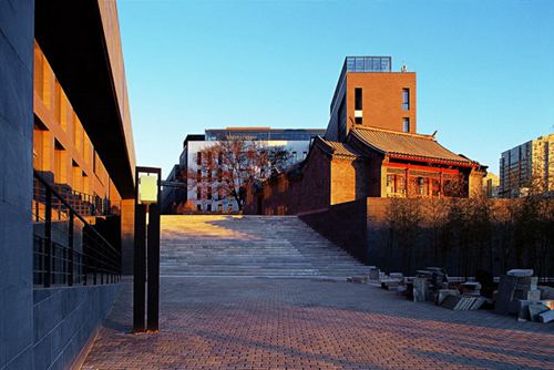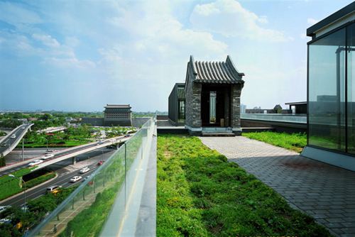 选用材料:外墙装饰仿传统磨砖对缝的风格,大砖规格,力图与城墙,四合院砌体相呼应,采用劈开砖,自然朴实,又质地可靠,可作为传统砖的替代,建筑体块棱角分明,即有传统的质感又有现代的精准,结合玻璃、钢材、铝材、木材、涂料等多种装饰材料形成建筑质感的多样变化和对比统一。局部玻璃屋面采用印刷玻璃,房屋瓦图案,形成独具特色的屋面效果。钢化夹胶玻璃与槽钢结合作为屋面防护栏板,风格独具;另一种“新材料”概念是采用纯正的老物件,项目中采用了大量的在拆迁中收集的墙砖、梁枋、屋瓦等原始构件作为点缀,使设计中渗透出深厚的传统情结和文化内涵。