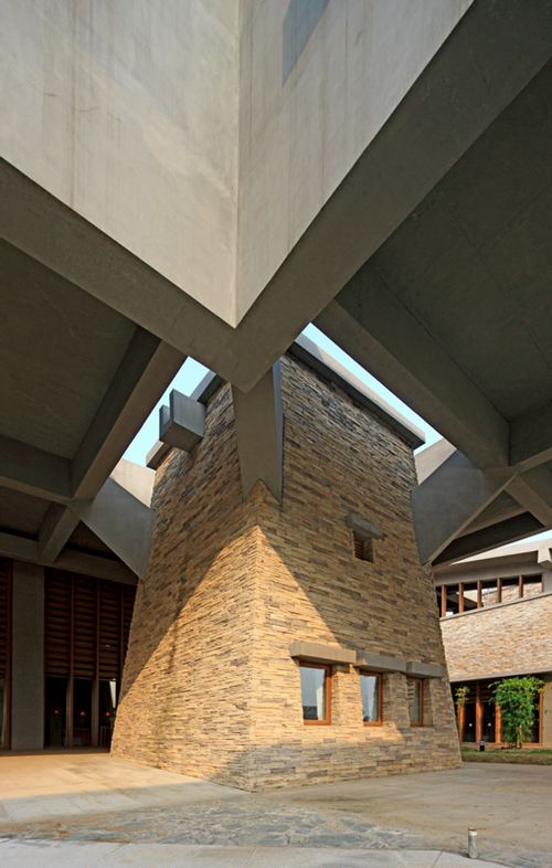 北川羌族自治县文化中心位于北川新县城中心轴线的东北尽端,向西与抗震纪念园相对,由图书馆、文化馆、羌族民俗博物馆三部分组成。设计构思源自羌寨聚落,以起伏的屋面强调建筑形态与山势的交融,建筑作为大地景观,自然地形成城市景观轴的有机组成部分,并与城市背景获得了巧妙的联系。开敞的前庭既连接三馆,也可作为各族人民交流聚会的城市客厅。建筑以大小、高低各异的方楼作为基本构成元素,创造出宛如游历传统羌寨般丰富的空间体验。碉楼、坡顶、木架梁等羌族传统建筑元素经过重构组合,成为建筑内外空间组织的主题,并强调了与新功能和新技术的结合。