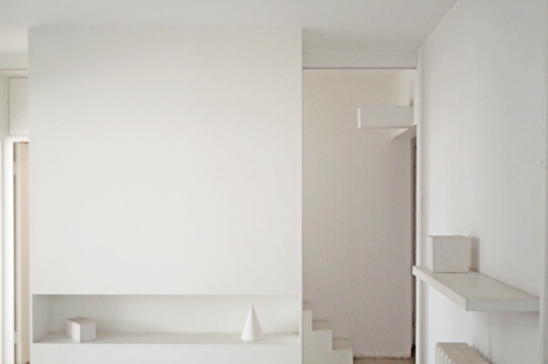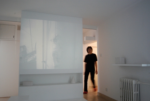 这是一个给家进行空间改造的项目。原有的平面是一个普通的3室一厅,在进行改造的过程中,设计者将其作为一个投射意识空间的封闭场所,即通过几何学的手段,将四维状态的呈数量状态的意识空间投射到三维的封闭空间之中。