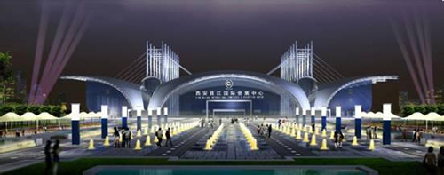 西安曲江国际会展中心是西安市人民政府投资、西安市商贸委共同投资建设的集多种功能为一体的综合性展览活动场所。位于西安市长安南路与水厂路交汇处,西临陕西电视塔、东临西安国际会议中心,中心造型新颖、外观宏伟,展馆主体外观造型似鲲鹏展翅,隐喻西安城市经济建设的腾飞。拥有先进的硬件设备及富于现代感的中心广场,具有承办国际博览会、全国性经贸洽谈会的能力。