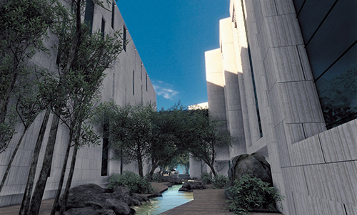 水:自主出入口建筑周边形成溪流,隐喻了张家界金鞭溪。