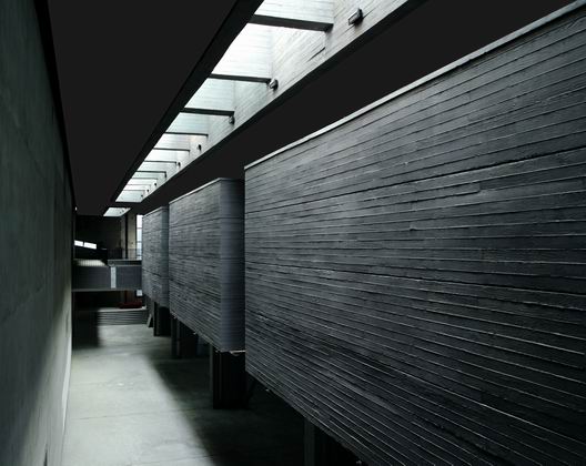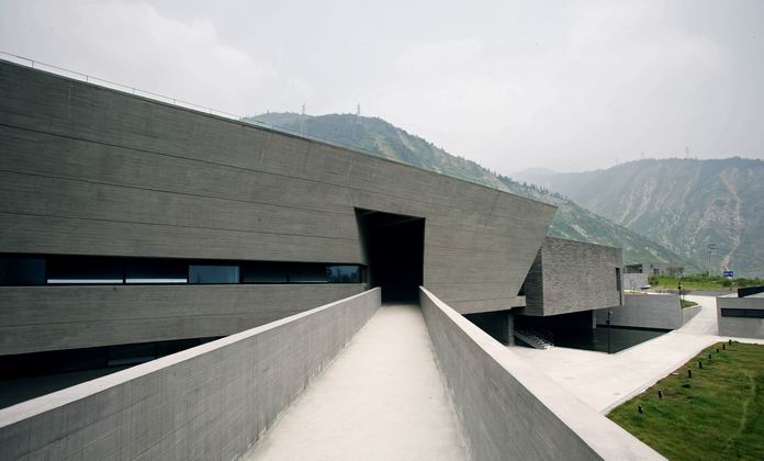 我们以植根于大地的地景式建筑为概念,来表达这大地的纪念主题,呈现一个自然、平和、静谧的纪念场所。以流水、地殇、崛起、希望为主题的四个庭院作为三大主题展厅之间的重要空间节点,分别以水、石、树、光为构成要素营造场所精神。在完整空间序列中,庭院在建筑中打开了与自然对话的窗口,为人们在参观过程中有节奏地与山体、天空、自然形成多次不同方式对话,在对话中缅怀逝者、平复心灵、思考未来。