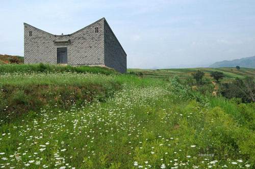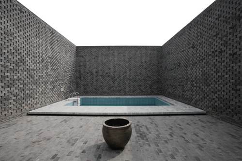 “井宇”以关中乡间居民为蓝本。关中俗语把当地居民的特点概括为“房子半边盖”,厢房一律采用单坡,厅房开间小,庭院窄长,院落树木少。针对宅院高墙、青砖灰瓦的传统,“井宇”从建筑尺度的延展、表皮的层次与功能的变通等作为切入点,在这几个层面强化设计和变通,使建筑摆脱单纯的文化标识,既能呼应周边带有异乡色彩的景观环境,又可以容纳外来的新的生活方式。“井宇”的纵向被拉长,墙体增高了许多,在尺度上与周围映山带河的风景相互呼应,“井宇”内的两进院子因此显得更加狭长。北侧厢房的下半部被掩在阴影中,与烈日照耀下的另一半形成强烈的对比,而蓝田独特的丽日艳阳则为原本普通的建筑表皮平添了不同的质感与色调。