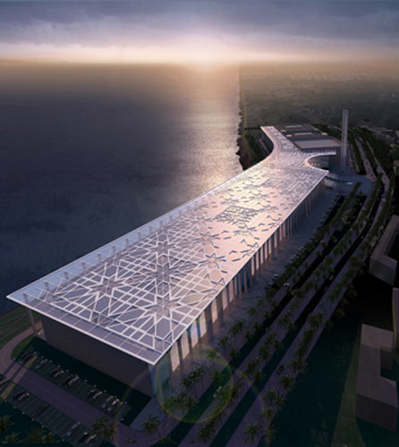 从实用角度而言,奥兰会展中心将成为一个促进贸易,旅游,实业和公众发展的项目。对于采光和布局的重视能够为当地的商业和文化活动设置一个良好的背景。坐落在面对地中海的山崖上,濒临奥兰市北海岸,中心将是集一个会议中心,会展大厅和酒店的一体化综合建筑。