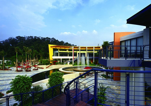 设计特点:总体布局采用组团式的小区设计,通过人车分流、空间贯通的设计手法创造丰富的景观步行街。设计坚持“原生 态”、“节能环保”、“健康、和谐” 理念,小区内由东向西设置一条弧形的商业步行街,商业、娱乐、运动设施及公共建筑与 绿化融汇成一个绿色休闲走廊。在户型设计上则采取入户花园、阳光室、情景洋房等新理念。其中情景洋房设计概念已在国内申 请专利。
