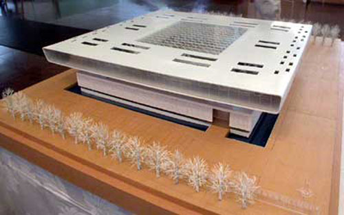 新馆在设计中前瞻性地重视和考虑绿色节能的设计理念。建筑形体简洁方正,建筑外墙和屋面采用挤塑聚苯板保温层;建筑的一、二层立面采用石材百叶外遮阳,立面和天窗选用热工性能优异的中空透明LOW-E玻璃,屋顶天窗带电动内遮阳帘;对于室内大空间采用地板送风和分层空调这些方式有效降低了建筑能耗。另外本工程还充分利用地下空间与地下温差较低的特点,五层的地上建筑设了三层地下室,地下空间占总建筑面积的55%,达到节能节地效果。
