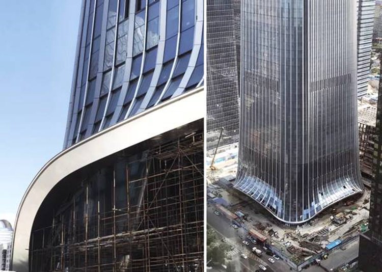 目前“中国尊”的整体形态、局部细节层次和主要空间已经显现。KPF主导的设计从原标地概念方案中仅保留了收腰式的轮廓。塔楼形体和幕墙设计从中国礼器精品中提炼了造型和装饰艺术的技巧。各层轮廓尺寸因塔楼的外形曲线变化而略有不同,自下而上自然缩小,同时顶部逐渐放大,最终形成中部略有收分的建筑造型。塔楼平面为圆角方形。塔楼宽度底部为78米,中部收分处宽度为54米,顶部宽度为69米。