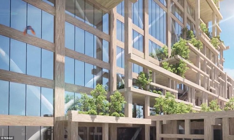 这座建筑是由总部位于东京的建筑公司Nikken sikkei设计的,但这座建筑将由住友集团(Sumitomo Group)的林业部门建造,住友集团是日本最大的商业集团之一。据悉,它将以花园屋顶为特色,上面覆盖着绿色植物。