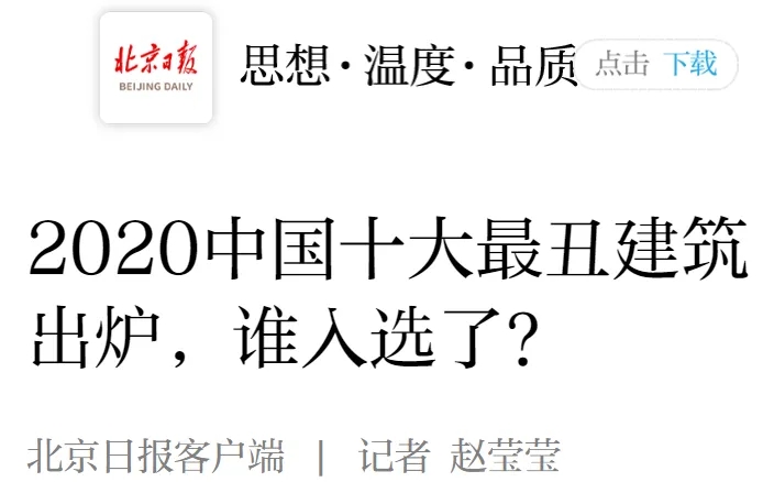 本次评选将全网征集候选项目,微信公众号、抖音、微博——动员全国网友的力量,360度、无死角...,让丑陋建筑无所遁形。