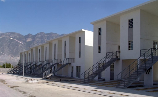 墨西哥新莱昂州的政府委托我们在一个圣卡塔琳娜州的6公顷的场地上设计一组中层阶级70户住宅。其所需的密度使我们采用了为伊基克而发展的类型。然而,圣卡塔琳娜州的气候与智利北方沙漠气候是非常不同的。年降雨量600毫米要求我们将自己的方案重新适应于这个新问题。