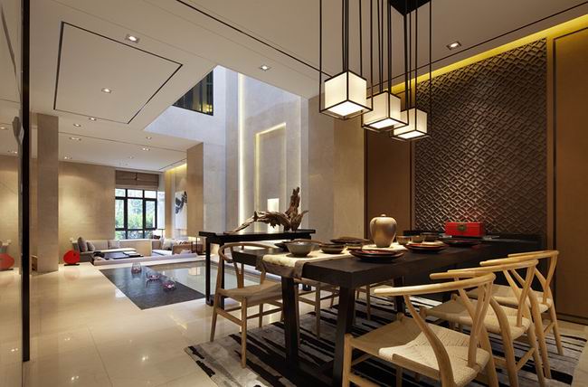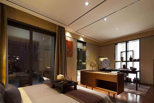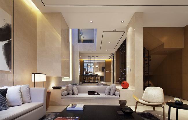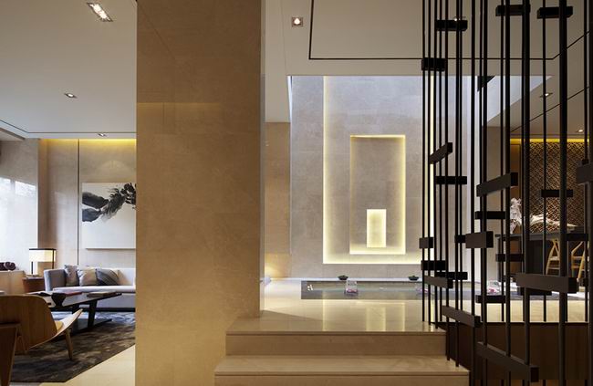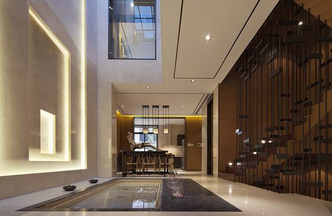 中海合肥蜀山别墅样板间设计,设计师将对东方文化的深层理解与剖析贯穿于设计中,用轻盈平缓的手法,保持空间干净利落的感觉,试图塑造一个舒适怡人的居住环境。空间的动静共生是此项目中最突显特征,东方的传统静谧与西方的开放简洁在空间中相互的影响与渗透,完美的结合。