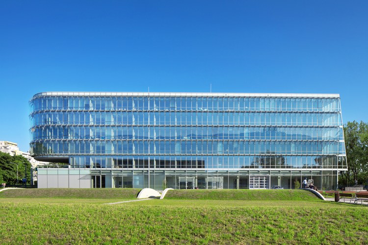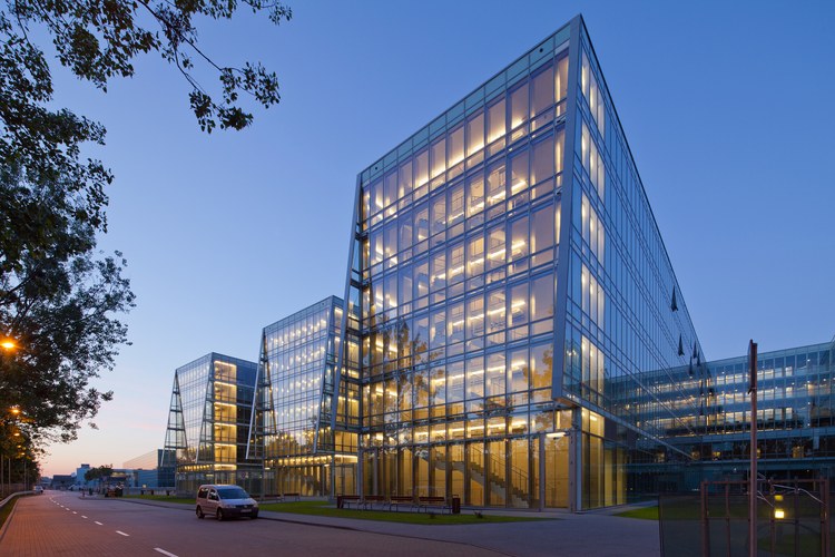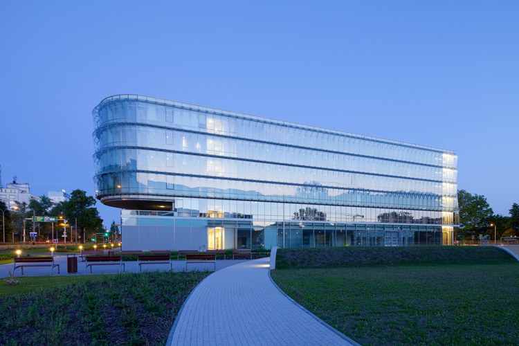 格丁尼亚的波美拉尼亚科技园国际建筑设计比赛最终由来自华沙的AEC Krymow & Partners建筑事务所拔得头筹。设计师的灵感来源于1920年代和30年代的波兰格丁尼亚的现代主义建筑。园区采用双层壳板立面系统,这种材料和系统保证了高质量的隔音效果和节能保温效果;外墙采用玻璃,既能采光又保证了视觉的通透性。