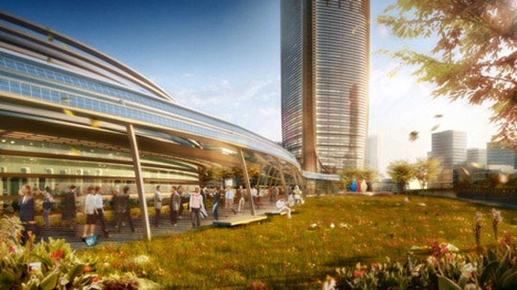 大厦所处的标志性园区位于雅加达的Rasuna Epicentrum社区,将是融合生活、工作和玩乐的城中之城,并成为可持续性、高效性和协作性工作场所设计的典范。园区内设有一座用于讲座和表演活动的拥有2,000个座席的场馆、一座提供了富有活力的公共空间和大众集会地的公共清真寺、以及一个配送能源和服务的中央能源工厂,其作为能源生产的枢纽,将是名副其实的园区“心脏”。“能量带”是一条拥有遮阳避雨功能的廊道,其屋顶表面集成了能够产生能量的光伏电板,并联系着园区各部,跨越陆桥和花园,造就了一系列易于通达的公共空间。