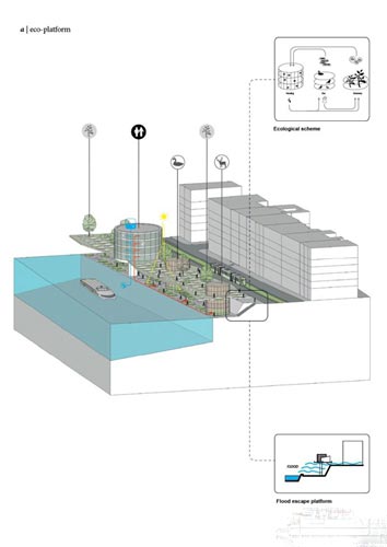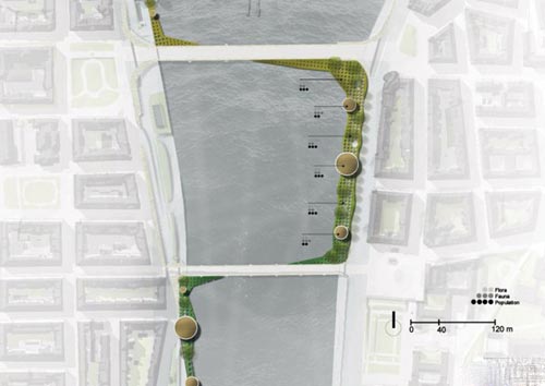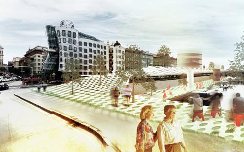 方案的“生态平台”规划不仅会给城市居民带来益处,同时会增加游客游览的市中心自然景观。平台的其他优点包括在未来洪水来临时,设计了一条逃生通道。此外,提供欣赏布拉格优美风光的城市观景台,关注对象集人类、花卉、动物为一体。