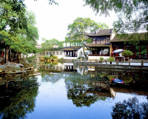留园(The Lingering Garden )在苏州阊门外,留园是明万历年间太仆徐泰时建园,时称东园,清嘉庆时归观察刘恕,名寒碧庄,俗称刘园。同治年间盛旭人购得,重加扩建,修葺一新,取留与刘的谐音改名留园。科举考试的最后一个状元俞樾作《留园记》称其为“吴下名园之冠”。为全国重点文物保护单位,与拙政园、北京颐和园、承德避暑山庄齐名,为全国“四大名园”。1961年列为全国重点文物保护单位。1997年列入“世界遗产名录”。