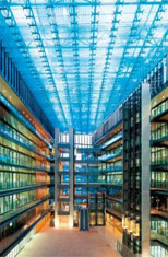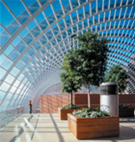 玻璃幕墙可使建筑物富有光泽,体重轻巧,明净晶莹,因而成为现代建筑流行的表现技法。可以说玻璃幕墙是建筑技术和建筑艺术发展到一定程度相结合的产物,它既改革了建筑围护结构,又完善了环境艺术效果。