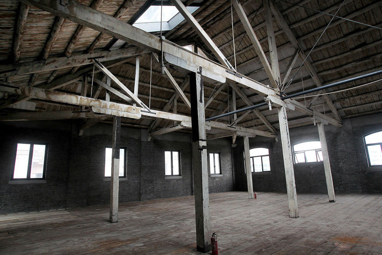 建于上世纪20年代初的新泰仓库,建筑面积逾6100平方米,由当时著名的英商泰利洋行设计建造,为中西混合式风格。该建筑共有三层,位于建筑中部的中央中庭将建筑划分为南北两部分,北部由三个仓库并联组成,南部由东西两个仓库及之间的南部中庭构成。仓库外立面青砖清水,红砖嵌饰,窗与门大量采用拱券形式,并配以精美的细部设计,屋顶为歇山形式,其独特的建筑空间组合和结构细部均体现了老上海产业建筑所具有的高质量的建造和施工水准。