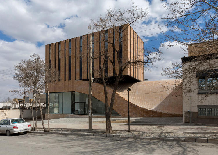 建筑以伊朗传统的手工织物Termeh为名,呼应了其波浪式的形态。采用当地的砖按照传统方式砌筑,与周围许多房屋的外墙相融。浪状的砖墙面也提供了进入二楼的入口,从那可以进入办公区。