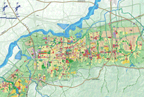 中心城区建设用地集中在北部黄河和南部山区之间的适宜建设区域内选择,用地发展方向在现状城区用地的基础上主要向东西两翼拓展。