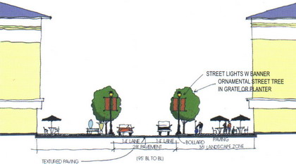 减少社区内部汽车交通也是设计中的重要概念,社区车行道较窄,并减少街道停车和环路,以创造良好的步行环境。