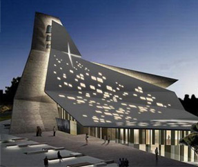 这是一座面积2322平方米的礼拜堂,位于法国斯特拉斯堡。由纽约建筑设计公司axis-mundi主持设计。建筑由一系列带褶皱的混凝土拱组 成,方案兼具微妙与戏剧性的设计特点,并将两者结合创造出了一个全新的,具有当代感的礼拜空间。