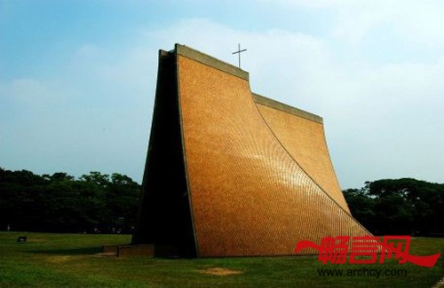 贝聿铭的设计具体到了台湾的背景环境,钢筋混凝土墙能有效的抵抗地震,能适应潮湿且台风多发的环境。错综复杂的施工过程和精心设计的框架由当地的工匠制作。 教堂外观覆盖玻璃菱形砖,其颜色与天空和绿色背景形成了强烈的反差。