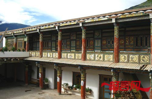 建筑风格:内部哥特式高大拱顶,外部呈“梯”字型,为藏民建筑物常见样式
