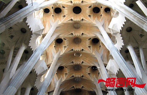圣家族大教堂是一座宏伟的天主教教堂,整体设计以大自然诸如洞穴、山脉、花草动物为灵感。高迪曾经说:“直线属于人类,而曲线归于上帝。”圣家族大教堂的设计完全没有直线和平面,而是以螺旋、锥形、双曲线、抛物线各种变化组合成充满韵律动感的神圣建筑。