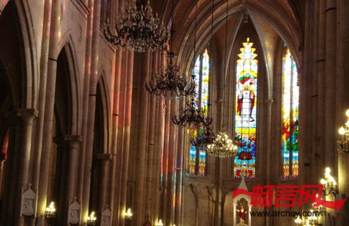 1864年法国教会专门请来两位建筑师VONUTRIN和HUMBERT主持,仿巴黎的圣克洛蒂尔德设计。教堂的真正指挥完成建造全是由广东揭西坪上镇尖田村的石匠——蔡孝所完成的,所以现在看到的这幢奇特的哥特式建筑里,又溶入了不少中国元素,整座教堂的建造,全用了中国的土办法糯米桐油代替水泥,这样既防水又牢固,穹顶石块也从中凿双孔中用铁枝穿起来,这样更牢固,教堂楼顶的出水口,也改成了中国狮子造型,地板也改掉了原先设计的石块改成广东大阶砖,这样防湿性更好,门上也刻上了广式木雕。等到1888年教堂峻工,蔡孝已由原来二十几岁的小伙子变成了五十多岁的老人。但这已是比较短的教堂建筑时间了,巴黎圣母院建了87年,而德国科隆主教堂更是建了7个世纪才完成。