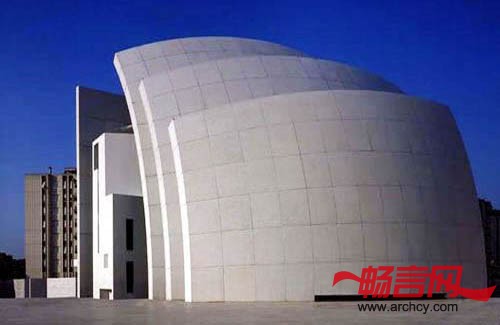 一个个新颖的形象展现在我们的面前:在以直线为主,不时穿插曲线的几何体中,透过比例优雅的玻璃墙面,清楚地显现出内部的景象,这些又纵深感的空间与白色实墙的交替更迭,产生了某种特殊的韵律感和节奏感,它们不是出自同一构图因素的多次重复,也不是出自单方面强调水平或垂直感,而是通过某种内在的呼应起作用,使他的建筑充满了某种艺术的品味,让人有一种舒适,柔和的感觉,也让人的心灵得到净化。
