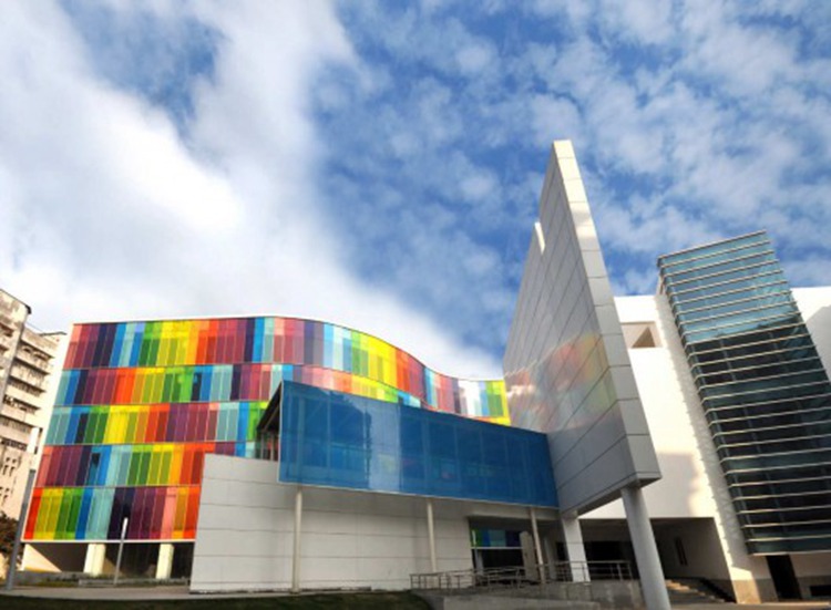 自然总是以它不断变幻的形式成为人们设计的灵感来源,天空就是一个例子,它不断变化的颜色和状态就是这个设计表皮的灵感来源。彩色的叠片加上PVB玻璃使建筑表皮生动活泼,上面的样式也是非重复的,它象征着捉摸不定的天空,也表达着年轻人的无限活力。