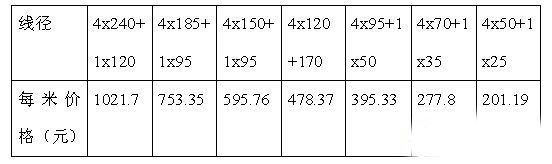 ⑥对于一些上下级均采用断路器的情况进行了调整,下级改为断路器,上级整定值减小,这样相应电缆线径减小。我们对市场上2013年上半年电缆报价情况做了统计如下表(以WDZC-YJY-0.6/1KV为例):