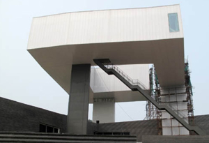 粗犷而厚实的墙体,银灰色的清水混凝土饰面,给人们以安全感和稳定感。 |