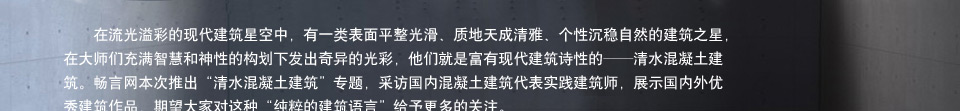 建筑师们逐渐把目光从混凝土作为一种结构材料转移到材料本身所拥有的质感上,开始用混凝土与生俱来的装饰性特征来表达建筑传递出的情感。 |