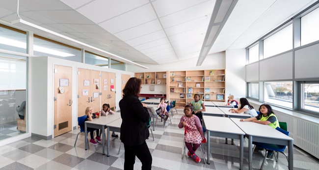 该项目摒弃了LEED®认证标准,以SCA绿色学校指导标准作为规范加以遵循设计,是纽约市学校建设管理局(NYC School Construction Authority)的首个“可持续性实验室”。其对终极可持续性的探索将对纽约市的“学校设计计划”(School Design Program)有实质性的助益,并为实现旨在显著降低致使全球变暖的碳排放量的“纽约市计划”(PlaNYC)的目标增添一臂之力。SOM的设计可将SCA标准公立学校的能耗降低50%。