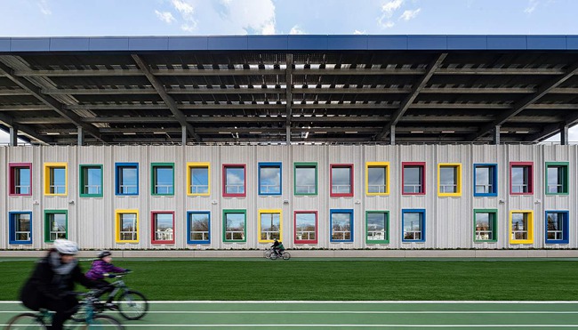 SOM优化了这座由庭院塑造的建筑的朝向和体量,以此充分利用日照来获得良好的采光以为屋顶和南立面上的光伏电板阵列提供能源。其它在设计中采用的可持续和低能耗措施包括超紧密的高性能建筑外墙、天窗采光走廊、节能照明装置、低能耗厨房设备、暖房和蔬菜花园、地热交换系统、能量回收型通风设备、按需控制通风和太阳能热水供应系统。