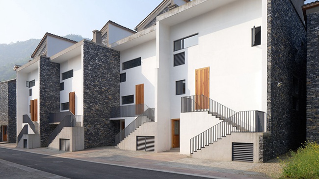 洞桥镇文村美丽宜居示范村:这是王澍主持设计的第一片农居群落。从2012年开始,他和同是建筑师的妻子陆文宇一趟趟地奔向这个名不见经传的小村庄,用灰、黄、白的三色基调,以夯土墙、抹泥墙、杭灰石墙、斩假石的外立面设计,呈现他理想中的美丽宜居乡村。屡获国际建筑大奖殊荣的王澍坦言,为村民设计农居并获得他们认可并不容易,因为这是在新型城市化的大背景下,寻回乡村传统和意义的过程。